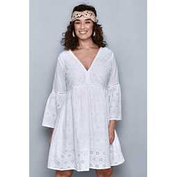Vestido Color gris. Composición: algodón elastano. Vestido liso con bordados azul marino y piedritas plateadas.