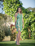 Vestido de algodón lycra, cuello en V, y con detalles en la delantera