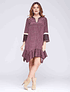 Este hermoso vestido corto en color burdeo está confeccionado en poliéster de alta calidad. Es elegante y sofisticado, perfecto para lucir en ocasiones especiales o eventos formales. Las mangas están bellamente bordadas, agregando un toque de detalle y feminidad al vestido.